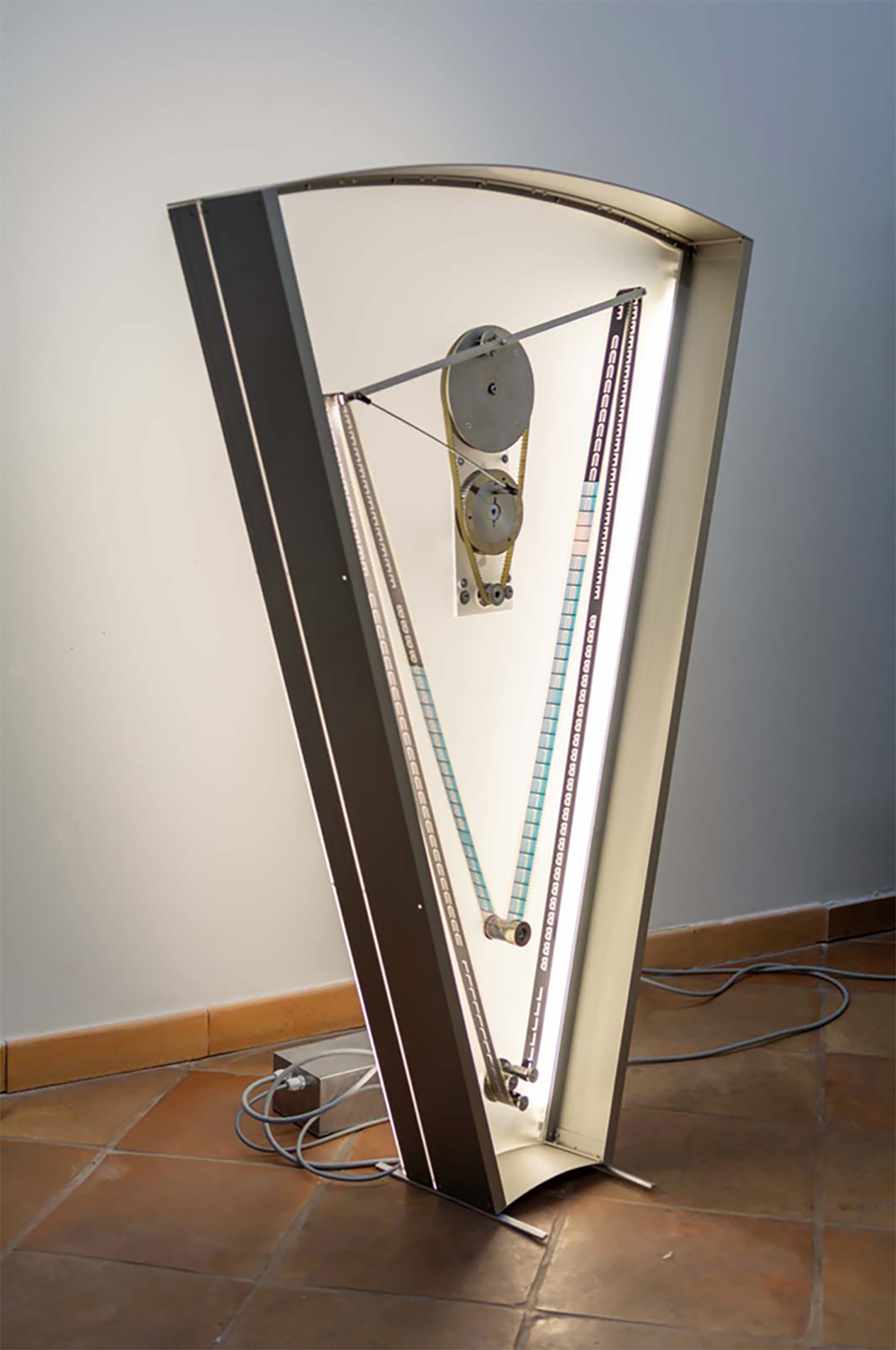 Tecnica: Scultura filmica, pellicola 35mm, motori, alluminio, plexiglass