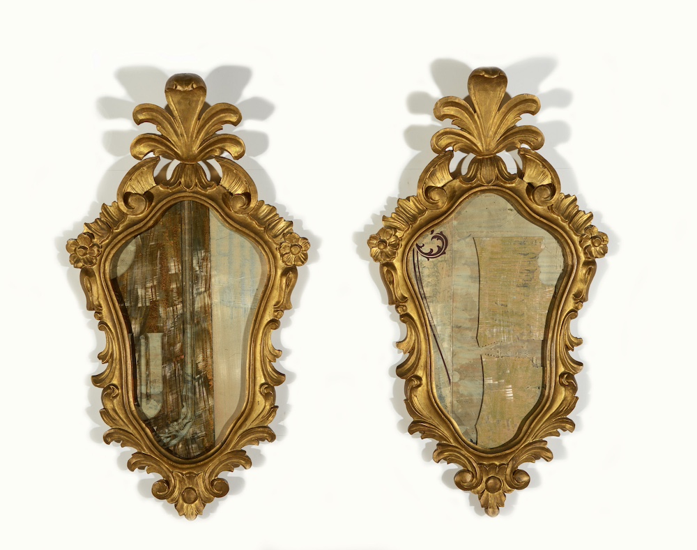 Tecnica: dittico con composizione di specchi graffiati con cornici originali