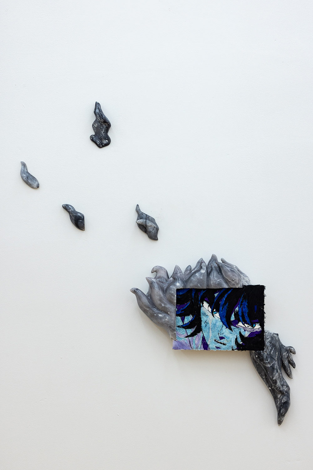 Tecnica: natural bird feather, soapstone, cotton paper and wood