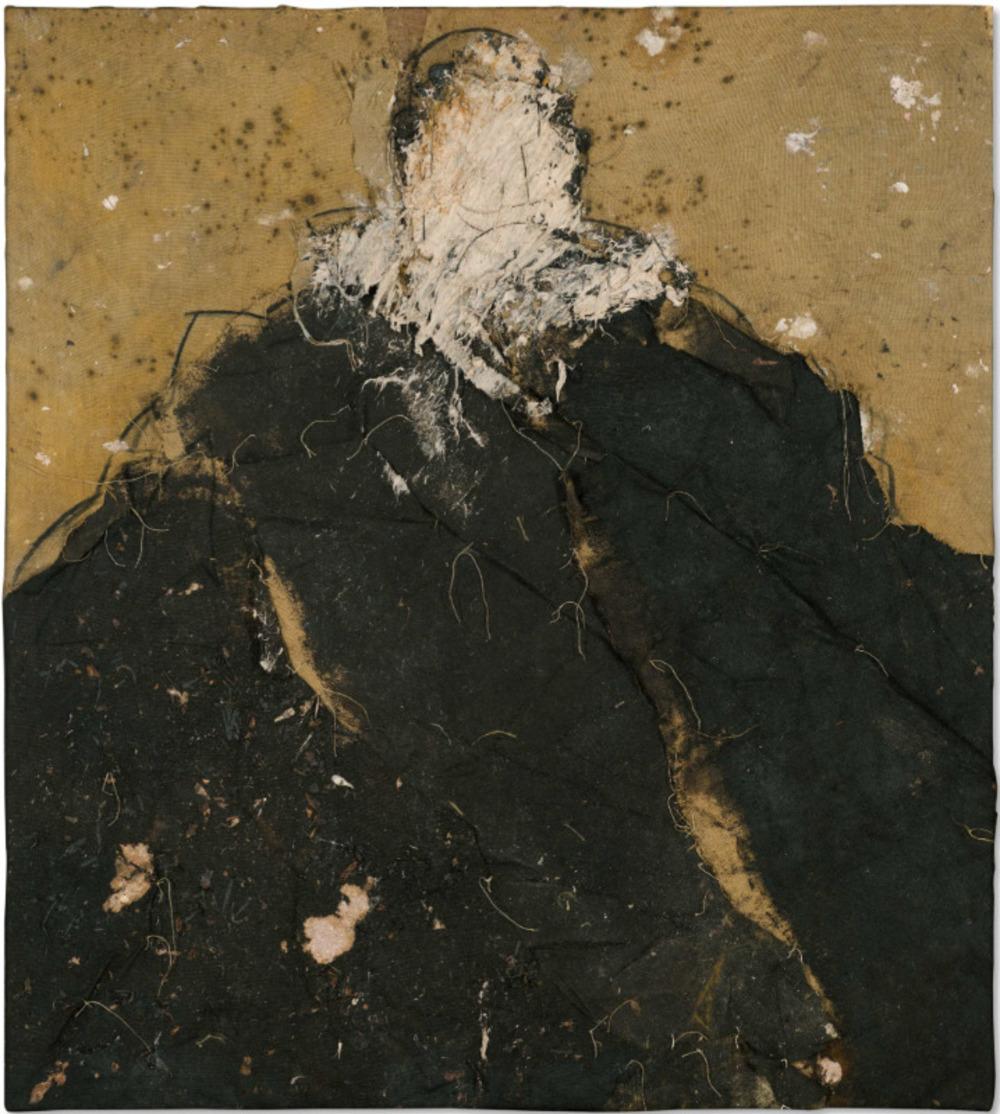 Tecnica: Olio e tecnica mista su tela di iuta cucita / Oil and mixed media on stitched burlap