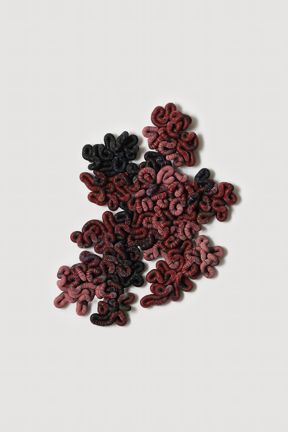 Tecnica: Discarded Beer Bottle Caps threaded onto Electric Fencing Cable, held in Polyurethane Sealant on Board