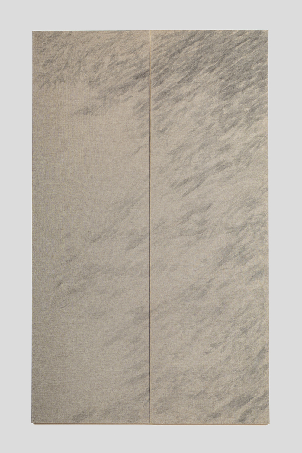 Tecnica: Inchiostro di china, capelli umani, crine di cavallo, terra, foglie di lavanda e foglie di ulivo, acqua, sole mattutino su tela di lino preparata con fondo trasparente, 2 elementi