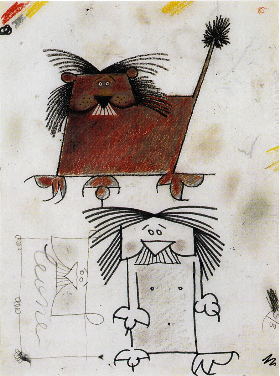 Tecnica: grafite, pastelli a cera e pennarelli su carta