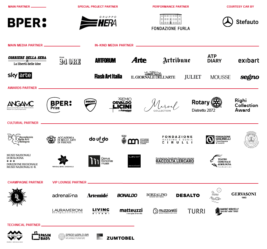 ACQUISTA IL BIGLIETTO!      -      GLI ESPOSITORI DI ARTE FIERA 2026      -      NUOVE SEZIONI      -      NUOVI CURATORI      -      CHALISÉE NAAMANI PER LA PERFORMANCE 2026      -      ARTEFIERA TI ASPETTA A BOLOGNA DAL 6 ALL'8 FEBBRAIO 2026      -      SEGUICI SUI CANALI SOCIAL      -
