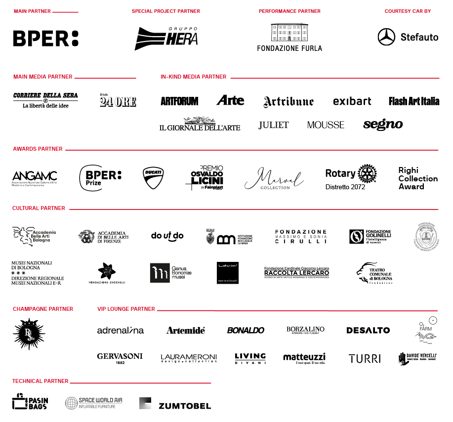 ACQUISTA IL BIGLIETTO!      -      GLI ESPOSITORI DI ARTE FIERA 2026      -      NUOVE SEZIONI      -      NUOVI CURATORI      -      CHALISÉE NAAMANI PER LA PERFORMANCE 2026      -      ARTEFIERA TI ASPETTA A BOLOGNA DAL 6 ALL'8 FEBBRAIO 2026      -      SEGUICI SUI CANALI SOCIAL      -