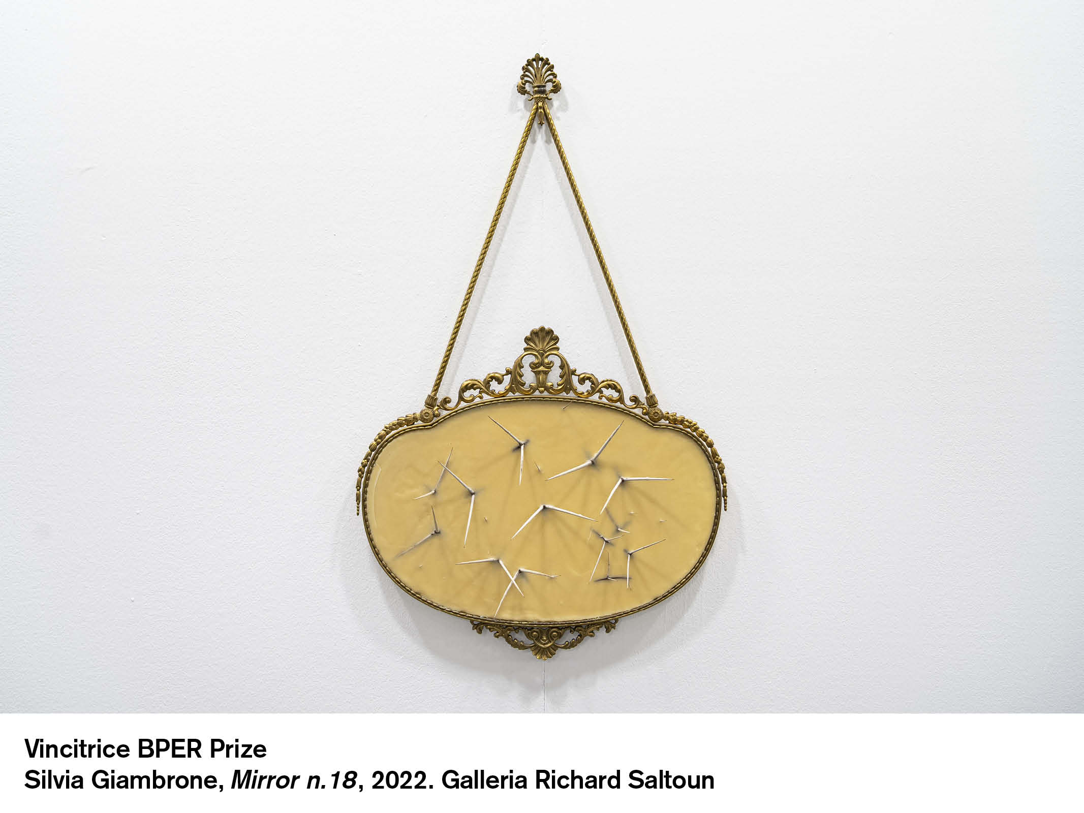 - Silvia Giambrone, Mirror n.18, 2022 (cera, ottone, spine di acacia, 95x57x13 cm), Richard Saltoun (Pad. 26, A2)